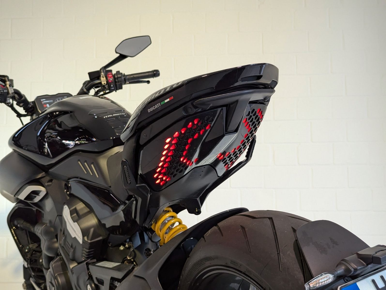 Riding Modes, Power Modes, Kurven-ABS, Ducati Traction Control, Ducati Wheelie Control, Daytime Running Light, Ducati Brake Light, Ducati Quick Shift, Ducati Power Launch, Geschwindigkeitsregelanlage, Hands-Free, 5-Zoll-TFT-Farbdisplay, Ducati Multimedia System, hintergrundbeleuchtete Lenkschalter, Voll-LED-Scheinwerfer mit DRL, automatische Blinkerrückstellung.