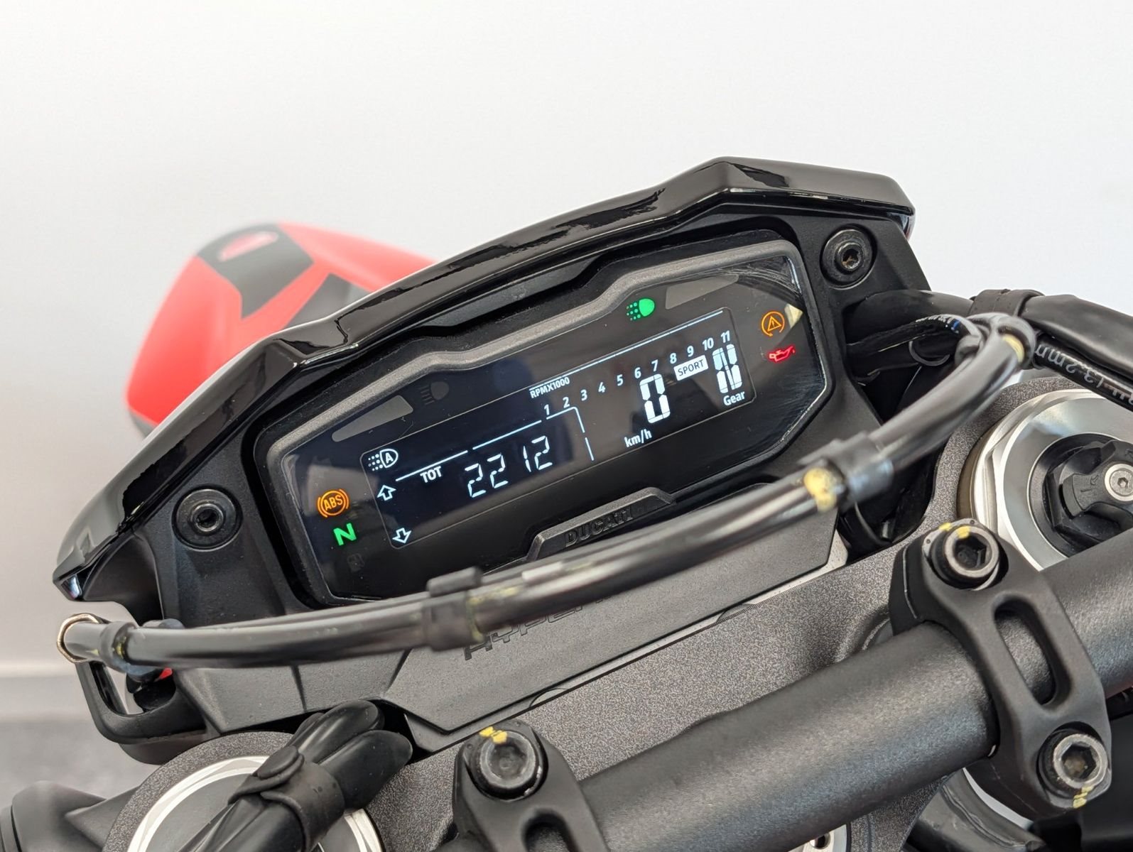 Power Modes, Ducati Power Launch (DLC), Ducati Quick Shift (DQS) Up/Down, Voll-LED-Beleuchtungssystem, Daytime Running Lights (DRL), konisch zulaufender Aluminium-Lenker, Lithium-Ionen-Batterie