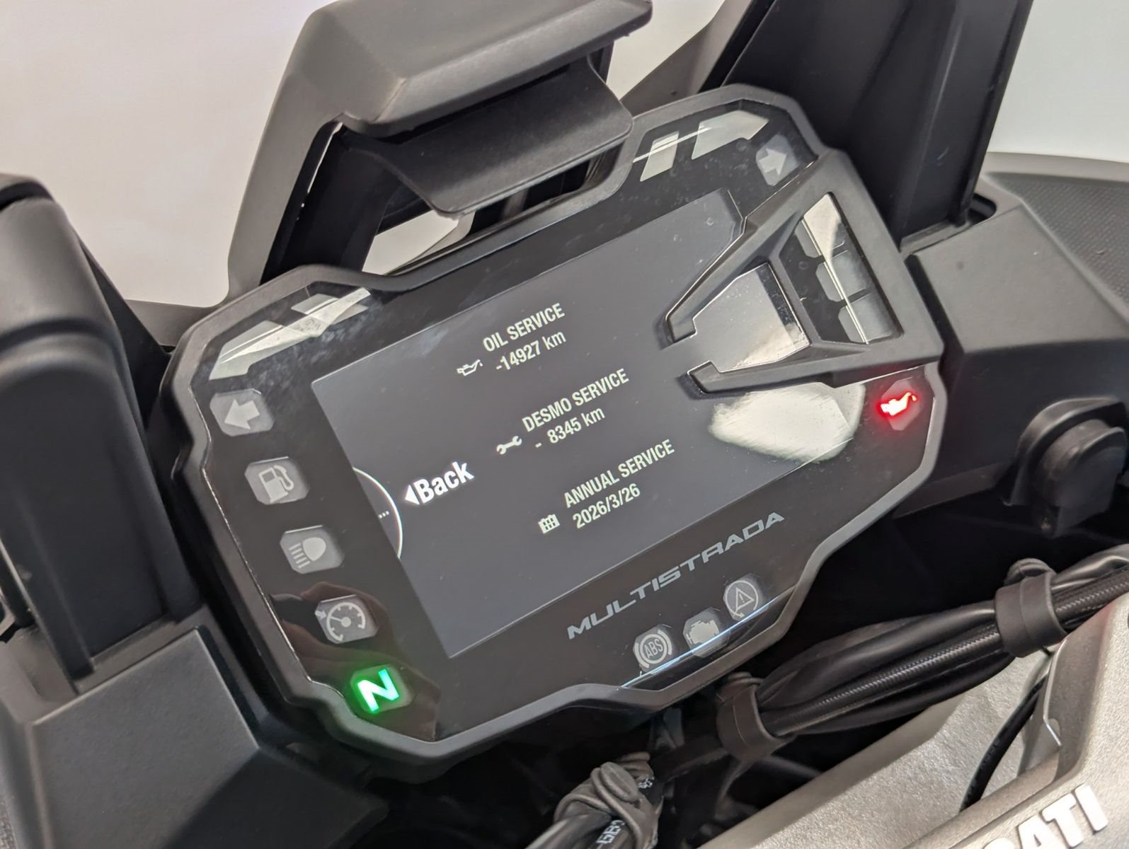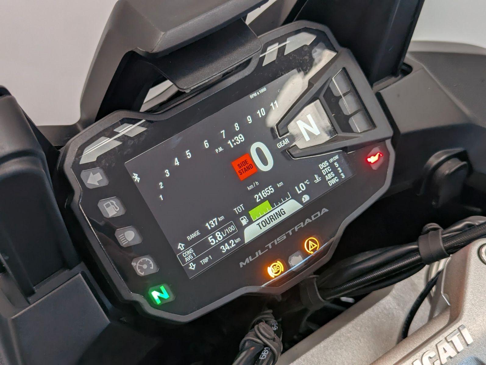 Du willst sportlich fahren, bequem touren und dabei nicht auf modernste Technik verzichten? Dann schnapp Dir diese gebrauchte Multistrada 1260 S Touring! Sie kombiniert Ducati-Performance mit Reiselust und ist bereit für alles - von der kurvigen Landstraße bis zur langen Tour mit Gepäck. Komfort, Power und Stil in perfekter Balance!