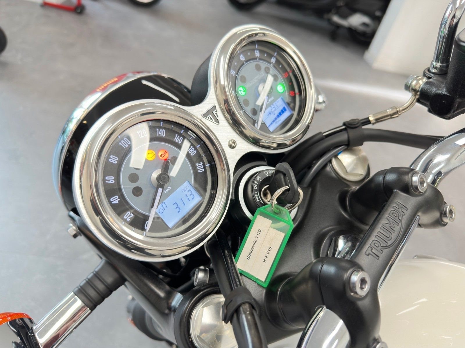 Eine neuwertige Triumph Bonneville T120, die Eleganz, Leistung und Fahrspaß perfekt verbindet - ideal für Liebhaber klassischer Bikes mit moderner Technik!