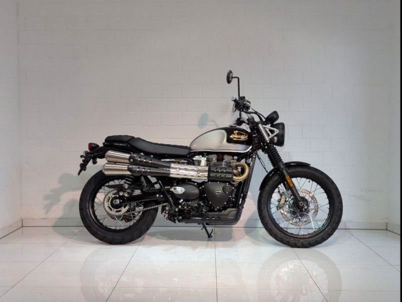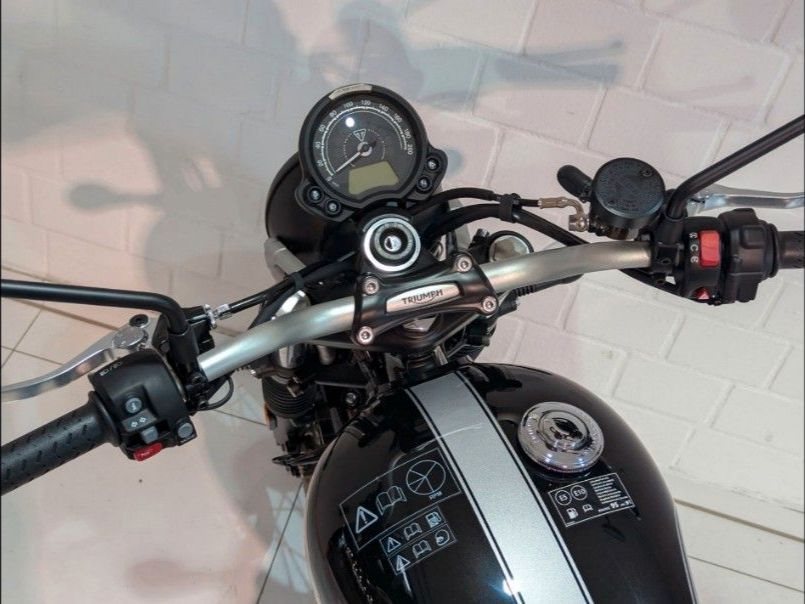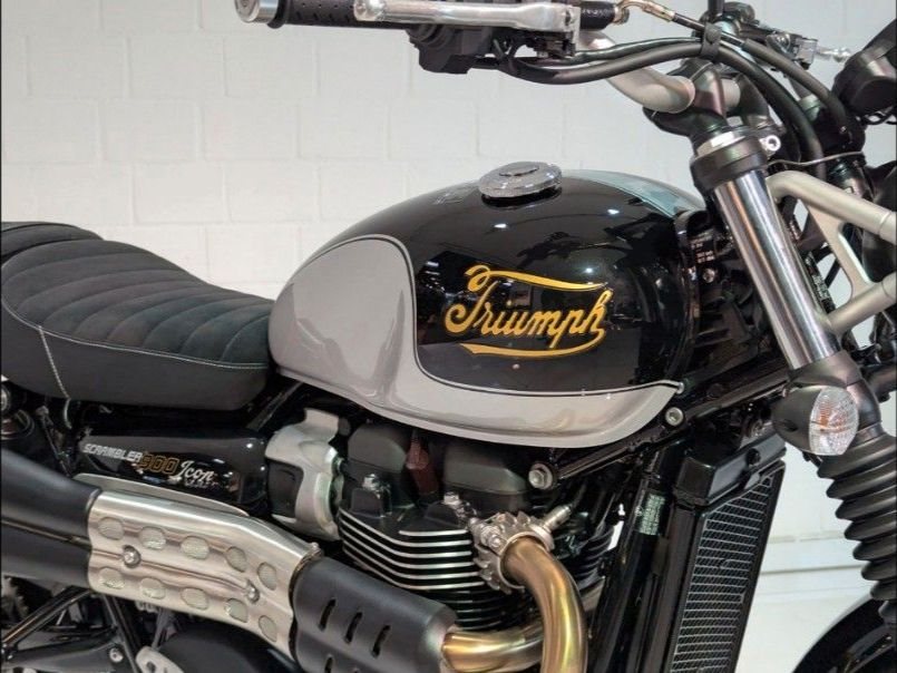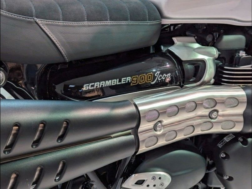 Die Farbkombination in Sapphire Black/Aluminium Silver der neuen Scrambler 900 Icon Edition verkörpert den Abenteuergeist dieses Bikes. Die kräftigen Farben des Tanks, ein Tankstreifen in Aluminium Silver mit einzigartiger Icon-Grafik und der legendäre goldene Triumph-Schriftzug von 1907 bilden einen auffälligen Kontrast zu den Seitenverkleidungen und Kotflügeln aus gebürstetem Aluminium. Der handgezogene Zierstreifen unterstreicht die markante Optik und macht das Bike zu einer hervorragenden Wahl für Fahrspaß in der Stadt und im Gelände.