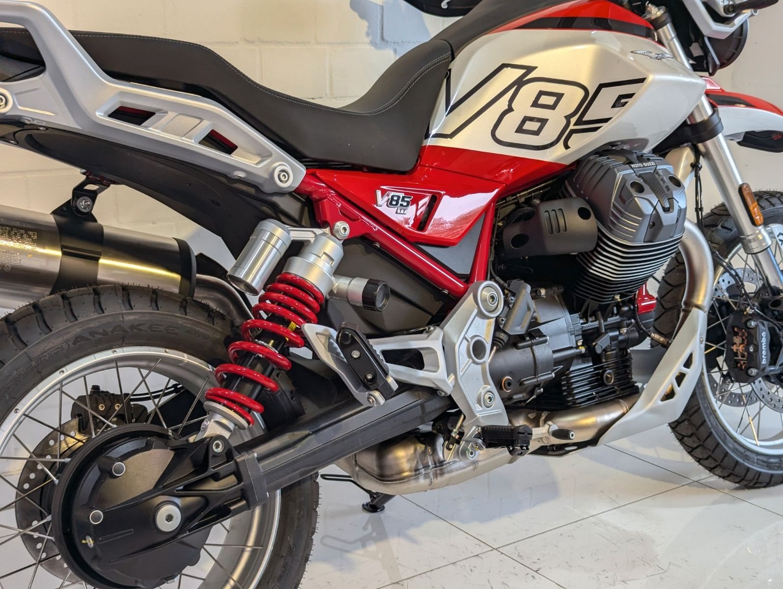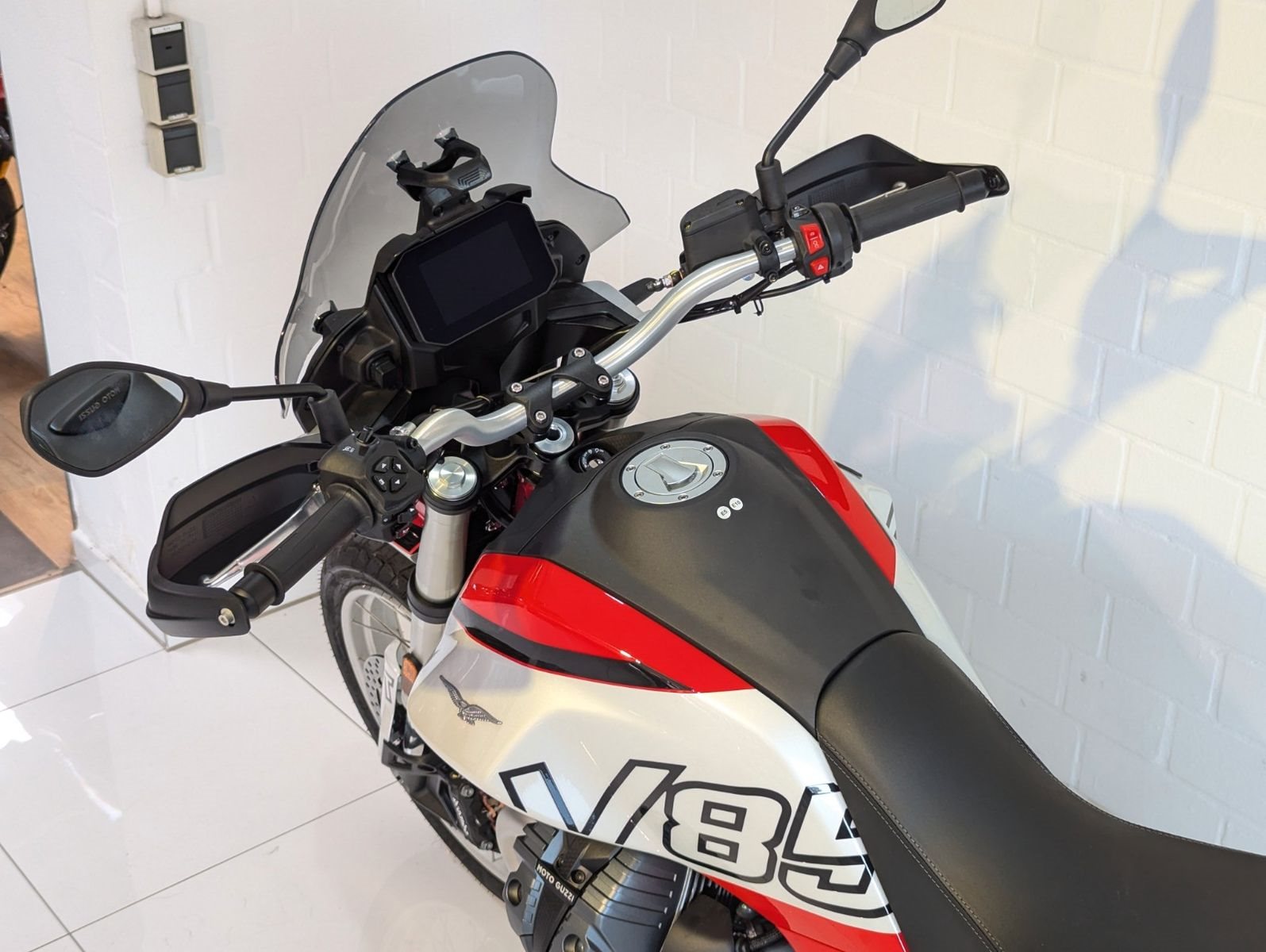 Sie sind ein Traum auf zwei Rädern, anders kann man die V85 TT und V85 TT Travel nicht bezeichnen. Der Euro 5-konforme 90°-V2-Motor, jetzt mit noch mehr Drehmoment im unteren und mittleren Drehzahlbereich, hat an Kraft und Elastizität zugelegt. Passend zu Ihrem individuellen Fahrstil und der Fahrsituation können Sie zwischen fünf Fahrmodi wählen. Dazu rollt die V85 TT seid 2021 auf neuen Speichenrädern mit schlauchlosen Reifen. Ihre Farben und eine neue Grafik betonen die Linien und Kurven, machen die V85 TT zum Blickfang. Stets bereit für kleine und große Abenteuer, für einen Ritt zu Ihrem Lieblings-Italiener, wird ein kurzer Blick auf Ihre V85 TT Sie überzeugen, um mit ihr die Zeit, Motorradfahren in seiner schönsten Form, zu genießen.