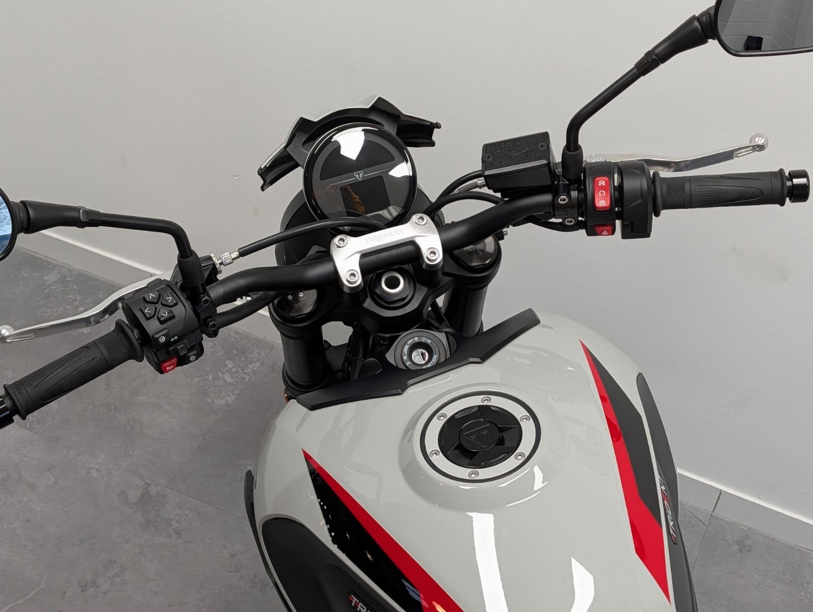 Trident 800 - gebaut für Fahrer, die sportliche Agilität, moderne Elektronik und den charakteristischen Triple-Sound in einem kompakten, urbanen Paket suchen.