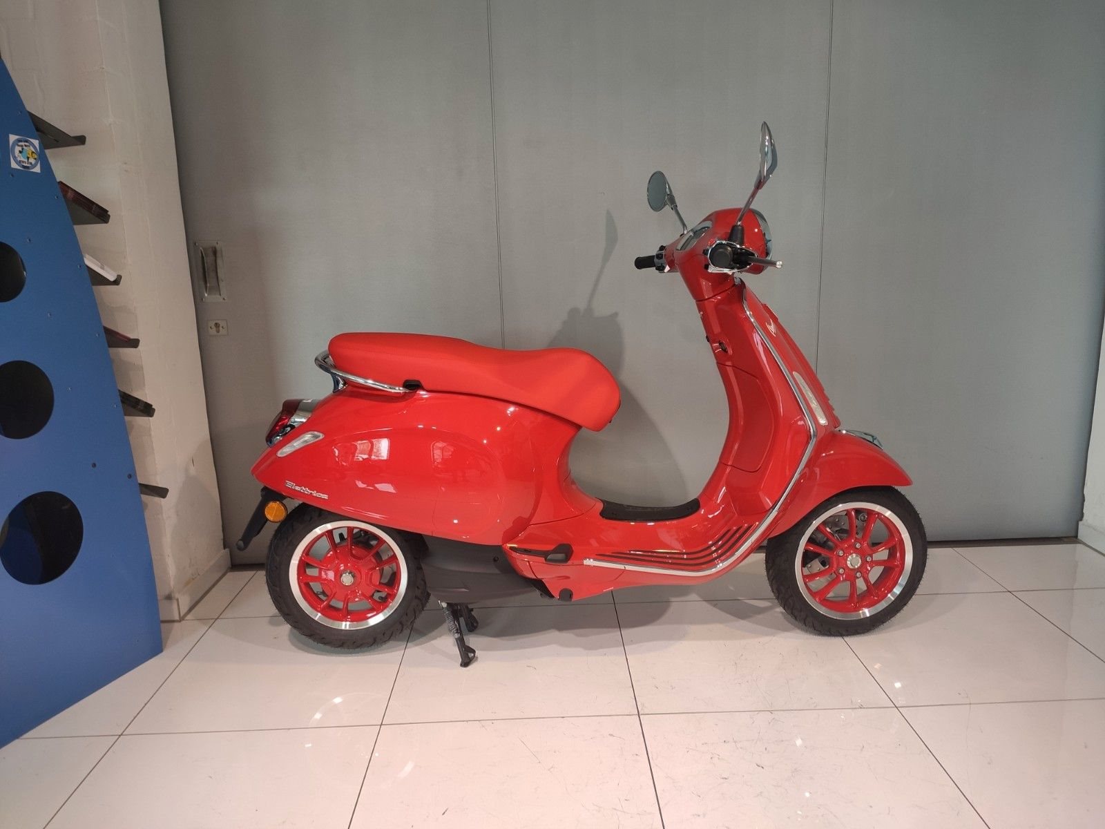 Vespa Elettrica RED Vespa und (RED) vereinen ihre Kräfte mit der Special Edition (VESPA ELETTRICA) RED, deren Lackierung in einem besonderem Rot erstrahlt. Mit verchromten Details, 100% elektrischer Power und einem fixen Beitrag für jedes verkaufte Modell, wird (RED) im Kampf gegen AIDS und Pandemien unterstützt.