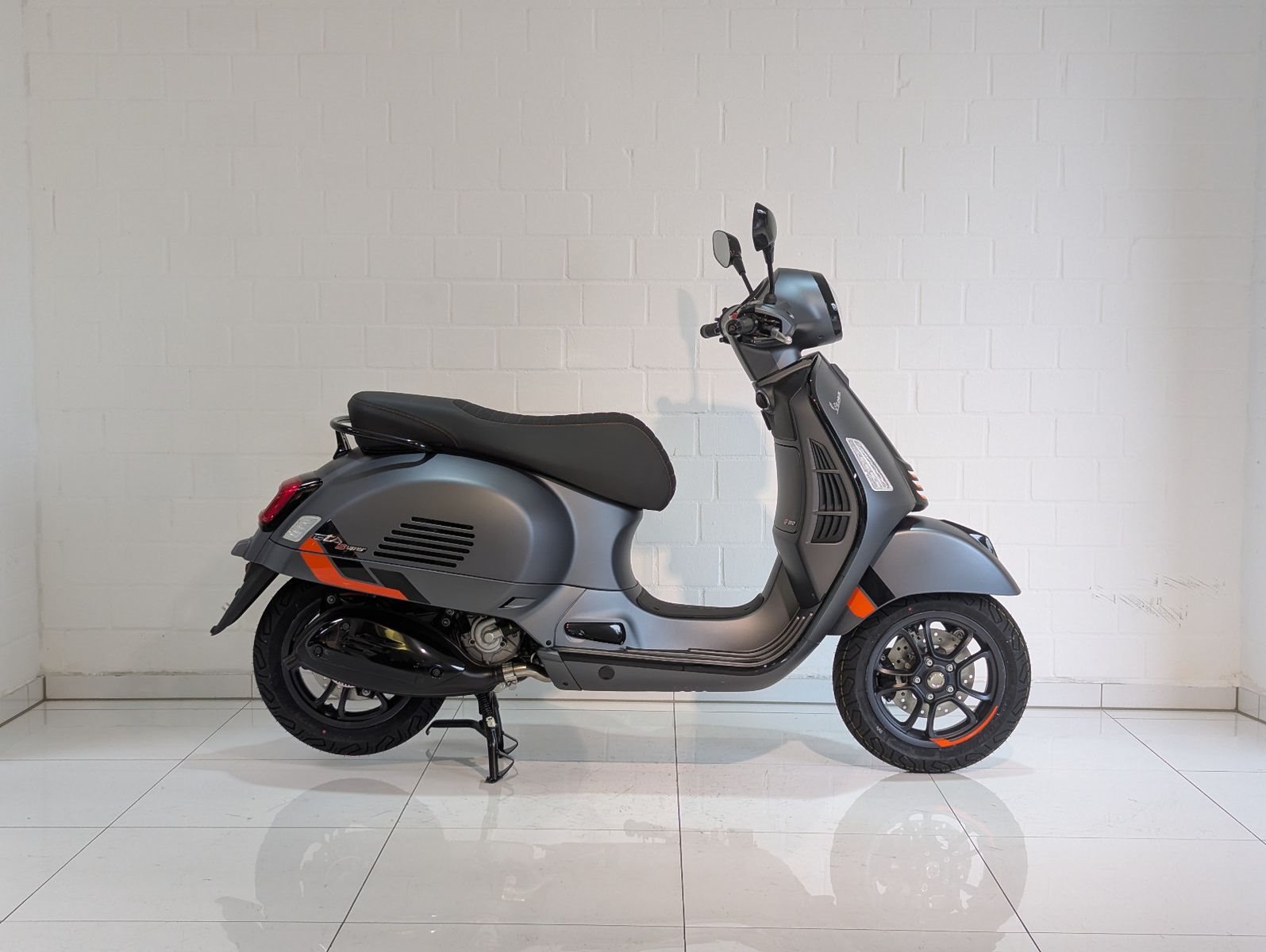 Die Vespa GTS SuperSport ist in einer großzügigen Auswahl an glänzenden und matten Farbschemata erhältlich, mit Einsätzen in Carbon-Optik und glänzenden schwarzen Details, die den perfekten Akzent für die von Ihnen gewählte Lackierung bilden. Die Vespa GTS SuperSport ist mit vielen zusätzlichen Details und sportlichen Grafiken ausgestattet, während der bequeme Sitz mit hochwertigem Material und Kontrastnähten gepolstert ist.
