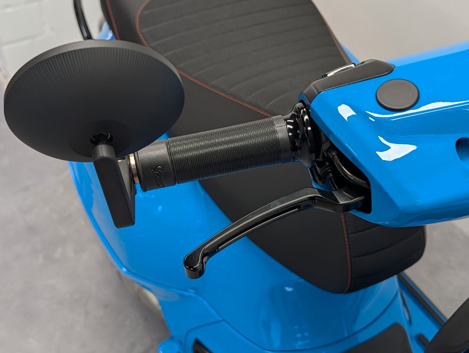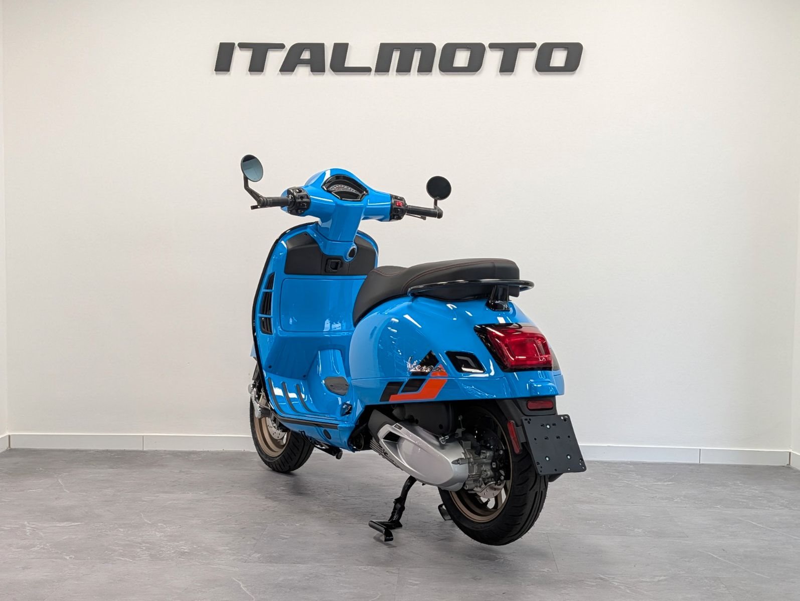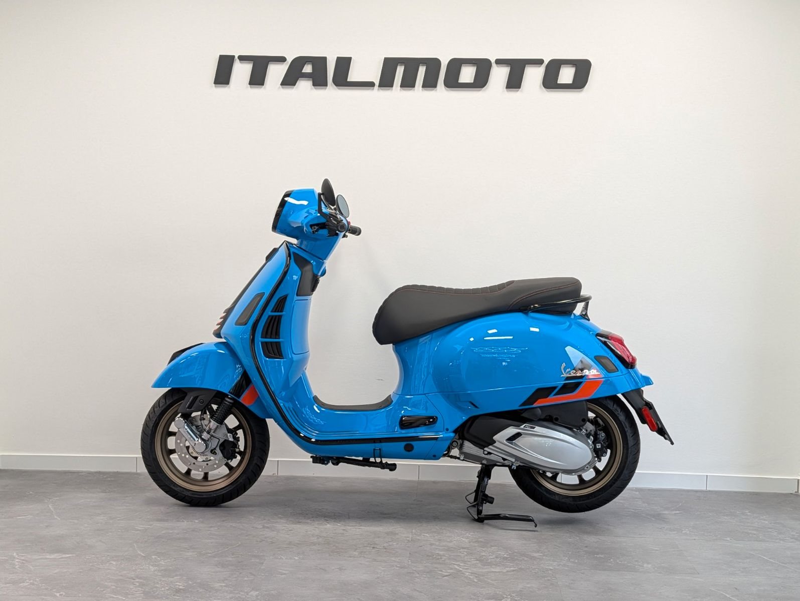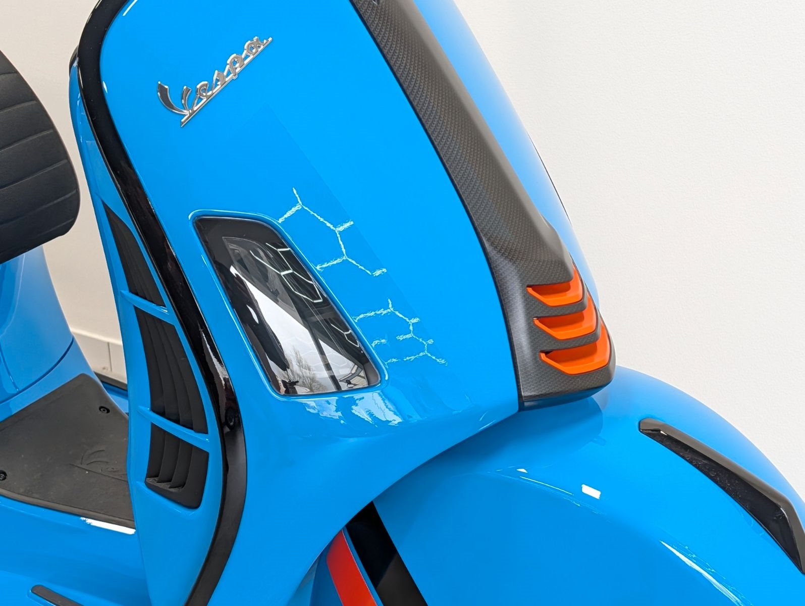 Die Vespa GTS SuperSport ist in einer großzügigen Auswahl an glänzenden und matten Farbschemata erhältlich, mit Einsätzen in Carbon-Optik und glänzenden schwarzen Details, die den perfekten Akzent für die von Ihnen gewählte Lackierung bilden. Die Vespa GTS SuperSport ist mit vielen zusätzlichen Details und sportlichen Grafiken ausgestattet, während der bequeme Sitz mit hochwertigem Material und Kontrastnähten gepolstert ist.