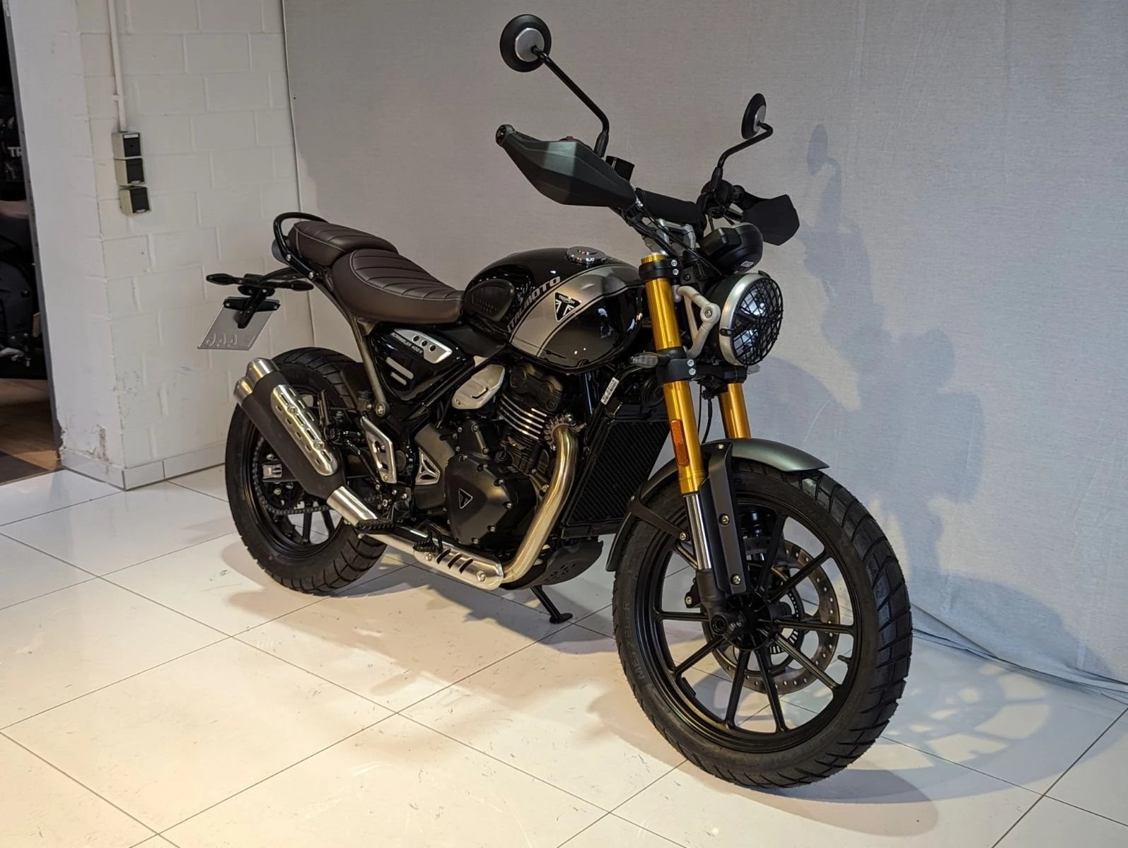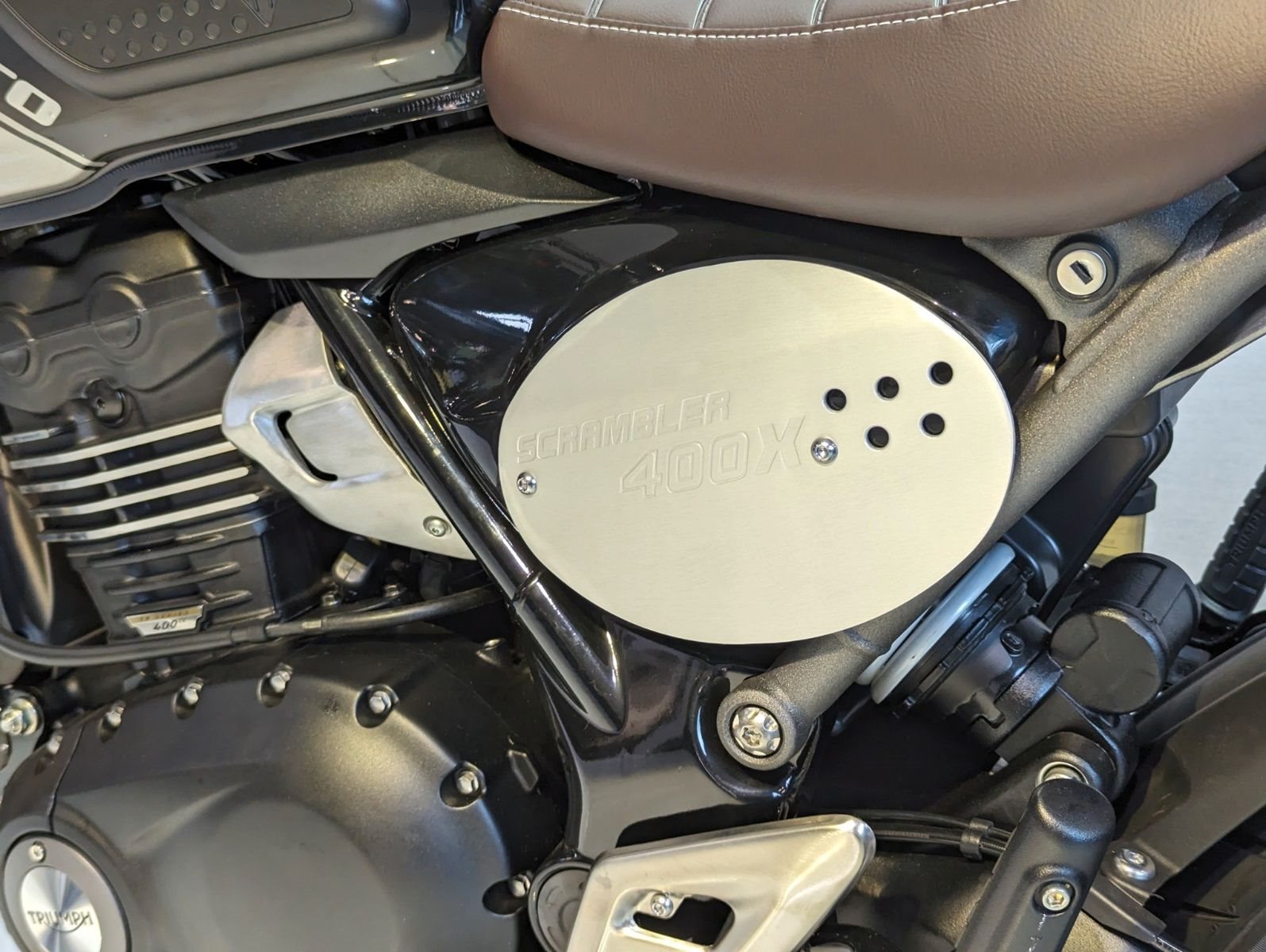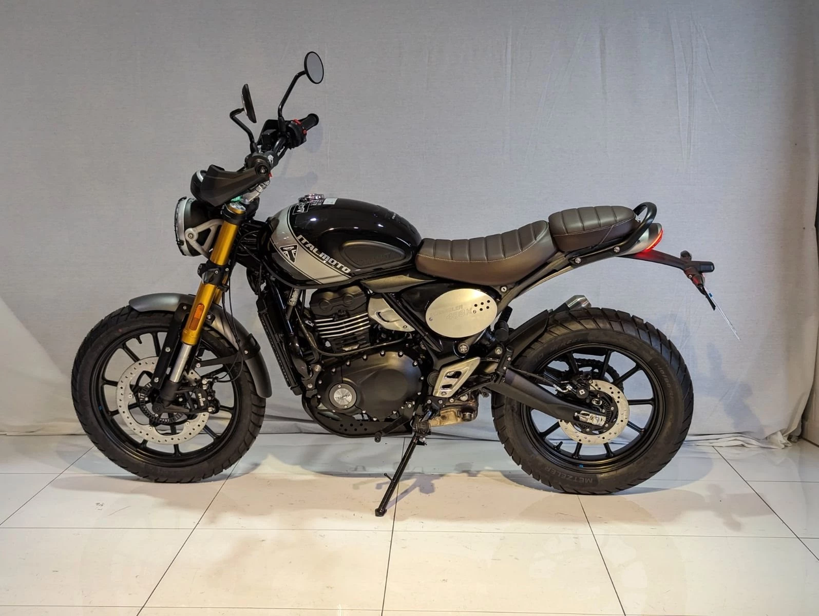 Die Scrambler 400 X ist ein erfrischender Neuzugang in der Scrambler-Familie von Triumph und eröffnet einer ganz neuen Generation das Fahrerlebnis der modernen Klassiker von Triumph.Mit ihrer zeitlosen Scrambler-Silhouette und der unverwechselbaren, gerippten Sitzbank bietet die Scrambler 400 X den unverkennbaren Stil einer Triumph, kombiniert mit hochwertiger Verarbeitung und erstklassiger Ausstattung voller moderner Fahrtechnologie.Der in Hinckley konstruierte Einzylindermotor erzeugt den für Triumph typischen charaktervollen und reaktionsschnellen Antrieb mit klassenbester Leistung und Drehmoment.
