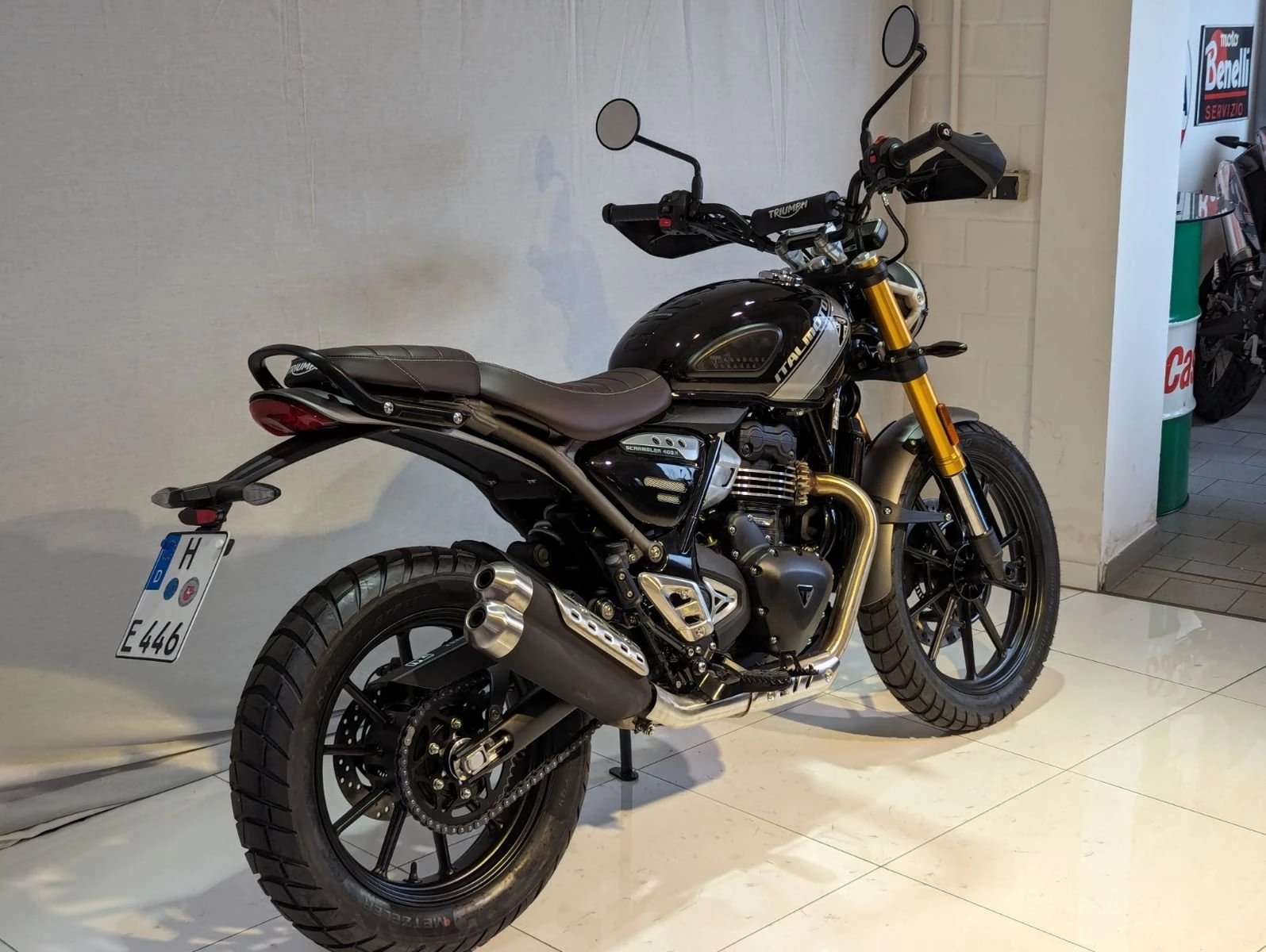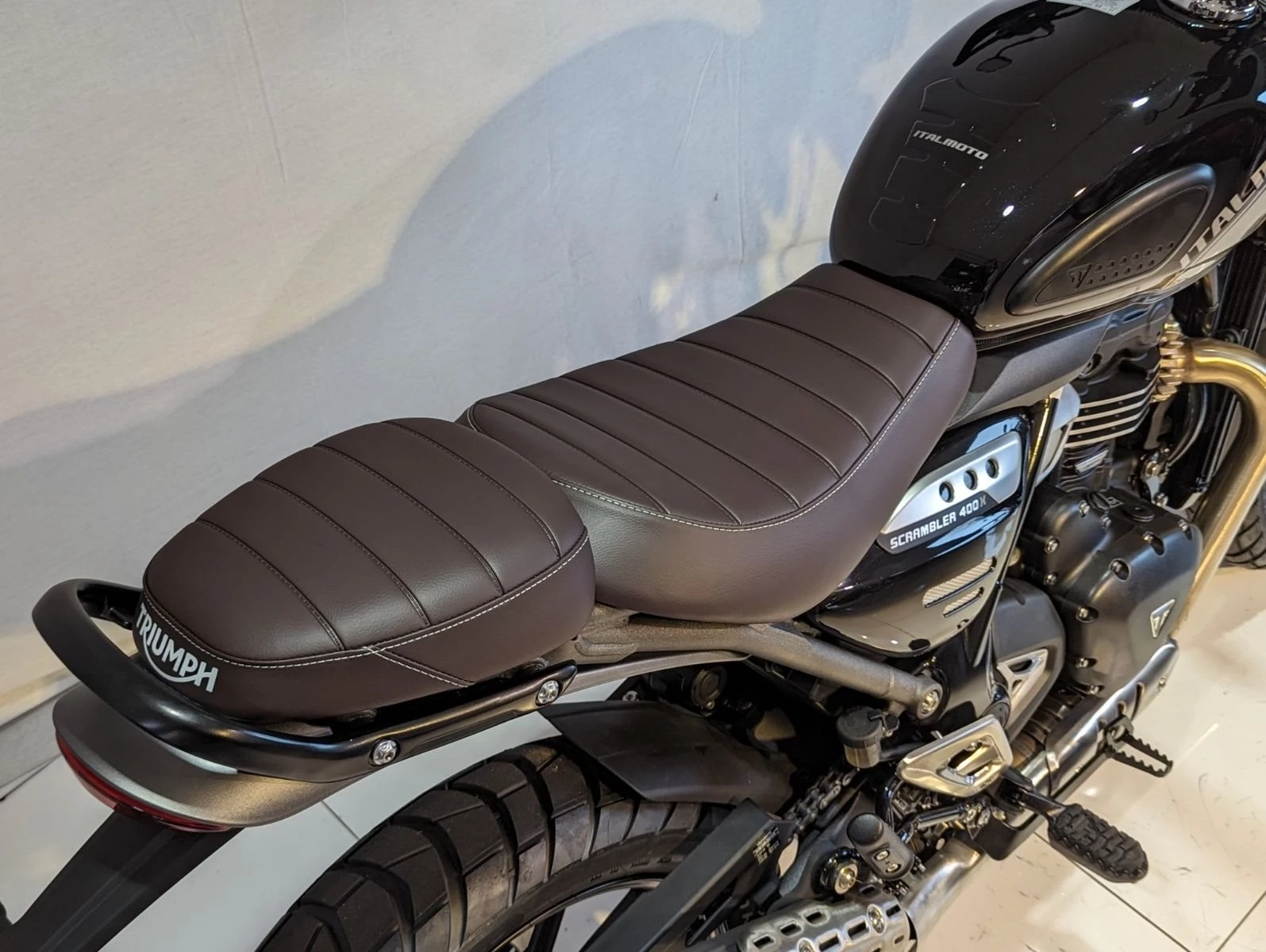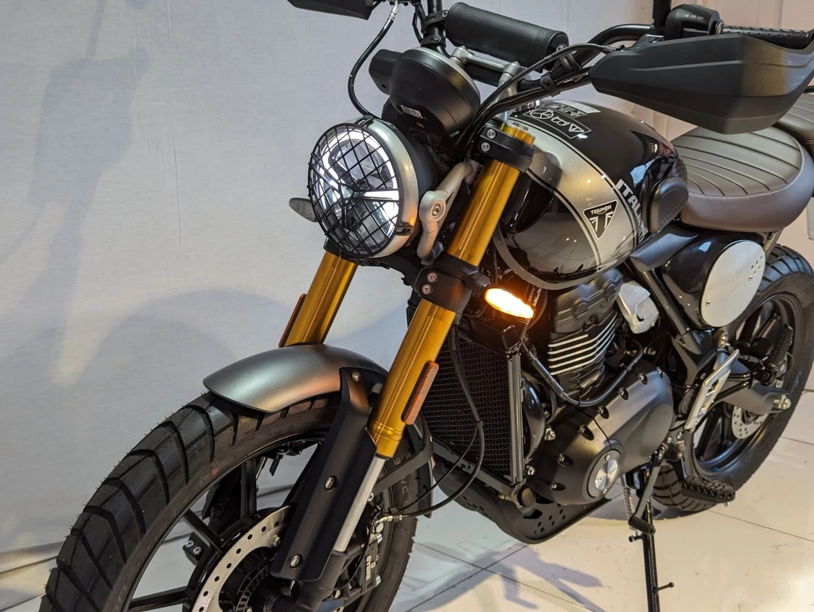 Die Scrambler 400 X ist ein erfrischender Neuzugang in der Scrambler-Familie von Triumph und eröffnet einer ganz neuen Generation das Fahrerlebnis der modernen Klassiker von Triumph.Mit ihrer zeitlosen Scrambler-Silhouette und der unverwechselbaren, gerippten Sitzbank bietet die Scrambler 400 X den unverkennbaren Stil einer Triumph, kombiniert mit hochwertiger Verarbeitung und erstklassiger Ausstattung voller moderner Fahrtechnologie.Der in Hinckley konstruierte Einzylindermotor erzeugt den für Triumph typischen charaktervollen und reaktionsschnellen Antrieb mit klassenbester Leistung und Drehmoment.